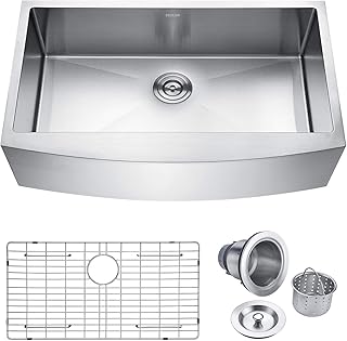 Keonjinn Kitchen Sink, 36 inch Apron-front Farmhouse 16 Gauge 304 Stainless Steel Deep Single Bowl