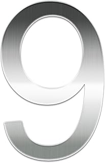Edelstahl Hausnummer Selbstklebend - Höhe 76mm/3Zoll - Metal Aufkleber (76MM, Satin 9)