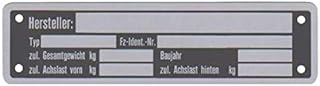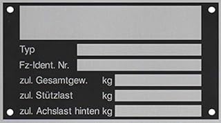 FKAnhängerteile - Angaben zum Fahrzeughersteller. 3 x typenschild neutral für Anhänger Typ 2. Felder:. Typ Bezeichnung. Maße: länge 148 mm, höhe 38 mm.. FKAnhängerteile: Artikelnummer: 9055736: 2. FKAnhängerteile. 5 x Blanko Typenschild Anhängertypenschild Neutral Anhänger Vers. 3. FKAnhängerteile - Höhe ca. 100 mm. Zum eintragen. Gewerbekunden - B2B. Unsere Angebote richten sich ausschließlich an Unternehmer. Wir schließen hier keine Verträge mit Verbrauchern. ☰