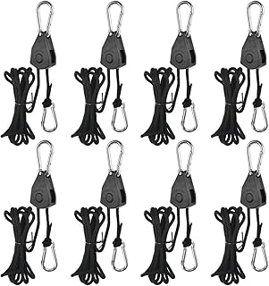 QLOUNI 8 Stück 1/8 Zoll Seil Ratsche mit Haken, 150 lbs, Duty Heavy Rope Ratchet Hanger, einstellbare Seil Ratchet, Wachsen Licht Ratchet Seil, Seil Rope Ratchet für Pflanzenlampe