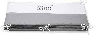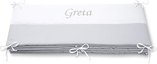 Amilian® Bettumrandung mit Namen bestickt Nest Kopfschutz Nestchen Bettnestchen Baby Kantenschutz Bettausstattung (Hellgrau/Weiß, 210cm (für das Babybett 140x70cm- Kopfschutz))