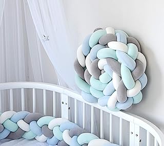 Trayosin Bettumrandung, Baby Nestchen 4 Weben Kinderbett Stoßstange Weben Bettumrandung Kantenschutz Kopfschutz 220cm/360cm (Weiß+Grau+Blau+Grün,220cm)
