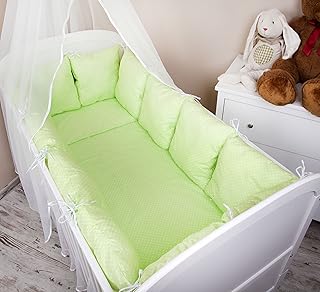 Amilian® Baby Nestchen Bettumrandung 420 cm Design: Pünktchen grün Bettnestchen Kantenschutz Kopfschutz für Babybett Bettausstattung