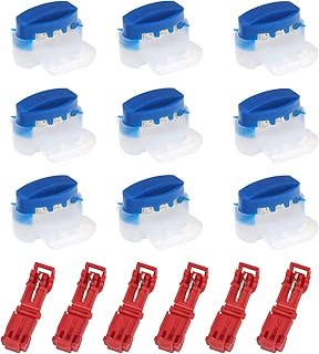 BELIOF 9 Gel Anschlussklemmen mit 6 T Schnellverbinder 15 Teilige Wasserdichte Samione Verbinder und Rote Stromdiebe Schnellverbinder Set für Mähroboter Schnelle Kabelverbindung