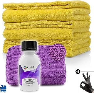 Detailmate Autopflege Lack Versieglung Set - Liquid Elements: Shield Wax - Keramikversiegelung + Carnauba Wachs 100 ml + Sponge Applikator + 3 Poliertücher zum Abtragen + 2 Schutzhandschuhe