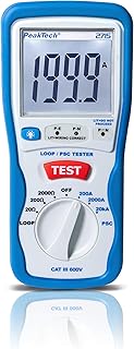 PeakTech 2715 – Digitaler PSC Schleifentester mit LCD Anzeige, Loop Tester, Prüfgerät für Impedanz Messungen, Kurzschluss Strommessgerät, Stromkreis Sicherung, Isoliertes Gehäuse - CAT III 600 V