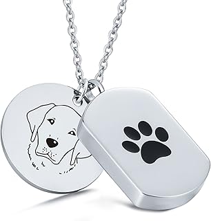 Dog Tag Kette mit Hund Pfote Anhänger Halskette Edelstahl Haustier Asche Schmuck, Memorial Urne Anhänger Worten Gravur - Golden Retriever