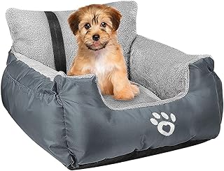 Mirkoo Hundesitz, zusammenklappbar, Haustierautositz, mit Sicherheitsleine zum Anklemmen und weicher Hundedecke, geeignet für kleine Haustiere unter 17 Pfund