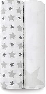 aden + anais Pucktücher, Baby-Decken aus 100% Baumwoll-Musselin für neugeborene Mädchen & Jungen, Wickeltücher-Set für Säuglinge & Kleinkinder, 120x120cm, 2er-Pack, twinkle, 4024G, Grau