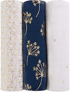 aden + anais Pucktücher, Decken aus 100% Baumwolle für neugeborene Mädchen & Jungen, Wickeltücher-Set für Säuglinge & Kleinkinder, Geschenke für Babys, 120x120cm, 3er-Pack, metallic gold deco