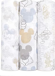 aden + anais Pucktücher, Baby-Decken aus 100% Baumwoll-Musselin für Neugeborene Mädchen & Jungen, Wickeltücher-Set für Säuglinge & Kleinkinder, 120x120cm, 3er-Pack, Mickey + Minnie