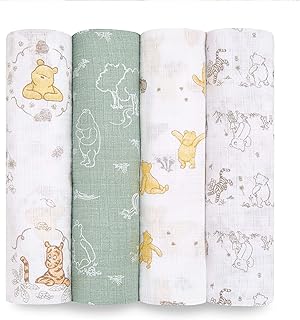 aden + anais™ essentials Pucktücher aus 100% Baumwoll-Musselin, Wickel- und Schmusedecke für Neugeborene und Kleinkinder, Baby-Wickeltuch für Mädchen und Jungen, 112x112cm, 4er-Pack, Winnie + Friends