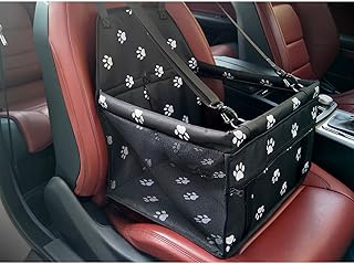 Maxjaa Hund autositz, hundeautositze für kleine Hunde, beweglicher Haustier-Booster autositz wasserdichtes & Faltbare welpen autositz (schwarz mit paw Prints)