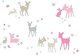 LOVELY LABEL Wandtattoo Kinderzimmer I Made in Germany I Babyzimmer Deko I Kinderzimmer Deko I Design Wandsticker Mädchen & Junge Waldtiere & Sterne I Rosa Beige
