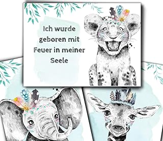 3er SET A4 Bilder Kinderzimmer Deko Mädchen/Junge, Babyzimmer Deko, Wanddeko Kinderzimmer Poster, ohne Rahmen (Löwe-Spruch)